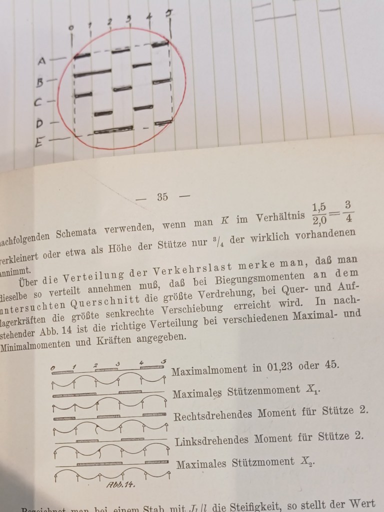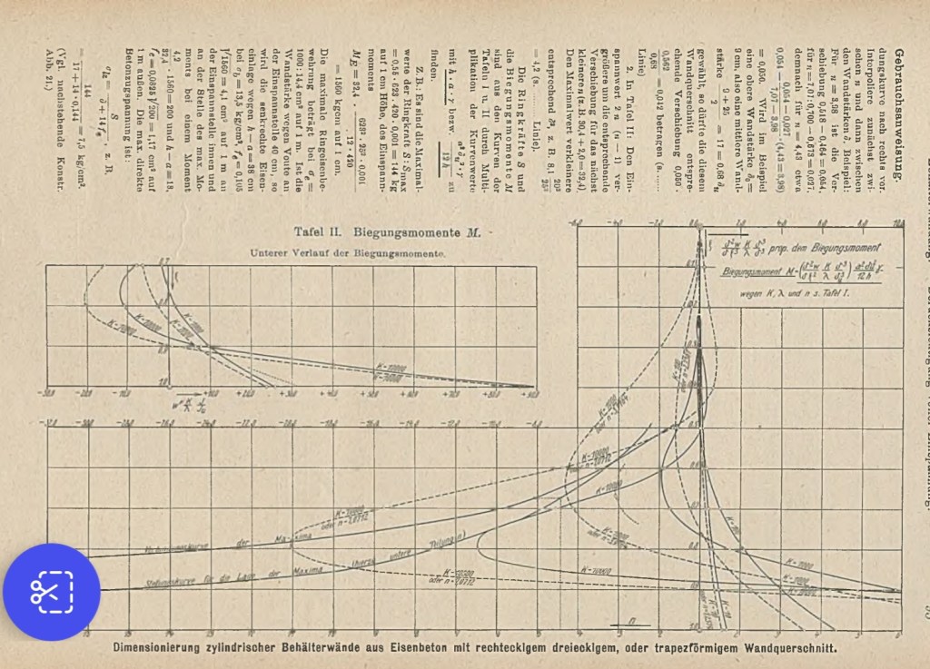 By 1915, Lewe — seemingly abandoning physics and now a practicing consulting engineer — earned his second doctorate (Dr.-Ing.), again from Dresden. His engineering dissertation, titled Die Berechnung durchlaufender Träger und mehrstieliger Rahmen nach dem Verfahren des Zahlenrechtecks (Matrix Calculus for Continuous Beams and Framed Structures), applied his 1906 physics insights directly to engineering problems. In the same year, he contributed an article to the German publication Handbuch für Eisenbetonbau (Manual of Reinforced Concrete Construction, 2nd edition, Volume 4, Section 5), specifically the piece titled ‘Einfache Formeln und Kurventafeln zur Berechnung zylindrischer Behälterwände mit verschiedenem Wandquerschnitt’ (“Simple formulas and charts for calculation of cylindrical tank walls with different wall sections”), published in Beton und Eisen Heft IV u. V.