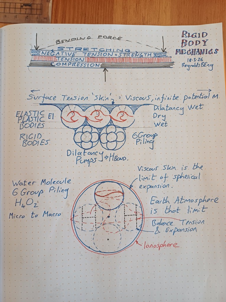 Negative Poisson’s ratio forces cavitation that pumps energy (J > H-bond) across 6-group molecular piling — sustaining the cycle eternally from micro (H₄O₂ clusters) to macro (Earth’s atmosphere/ionosphere as the viscous-skin limit of spherical expansion. The property has a dimension, a thickness.