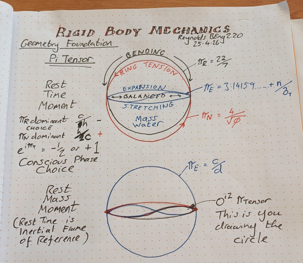 We now place the π_tensor on a rigorous rigid-body geometry foundation. The attached diagram (25.4.26) completes Pirates v7.8.1 by showing exactly how the tensor selects its dominant dimension at the non-rotating inertial centre (the 0^{i2} rest-time frame). Defined constants (unchanged):