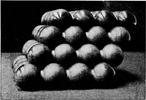 It is thus shown that any deformation from the normal piling causes the interstices between the grains to increase, expanding the bag. This