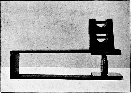 Putting the bag between two vertical plates and slightly shaking and squeezing, so as to keep the sand at its densest, it still has a free surface and it can, in this way, be spread out until it is a broad flat plate; it is still soft, as long as it is squeezed, but when the pressure is removed the elasticity of the bag tends to draw it back to its rounded form, changing the shape, enlarging the interstices and absorbing the excess of water. This is soon gone and the bag remains a flat cake with peculiar properties; to pressures on its