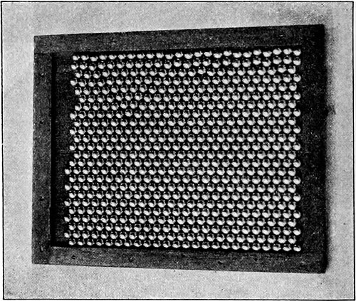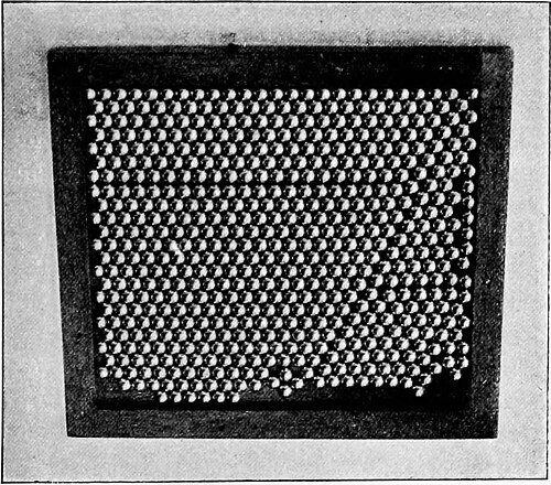 Abnormal piling implies any disarrangement which displaces the grains in the medium from their neighbours and so affects the gearing of the grains, as shown in models 4 and 5; in 4 the piling is approximately normal, the edges being free, while in 5 the piling is so abnormal as to prevent, entirely, the gearing in several lines.