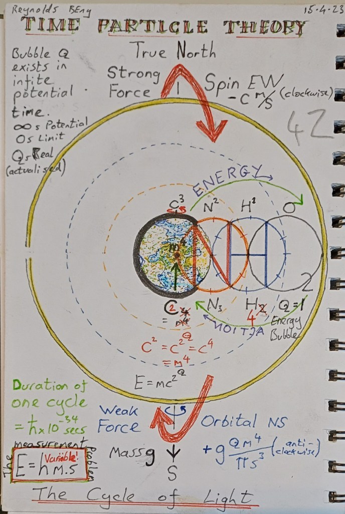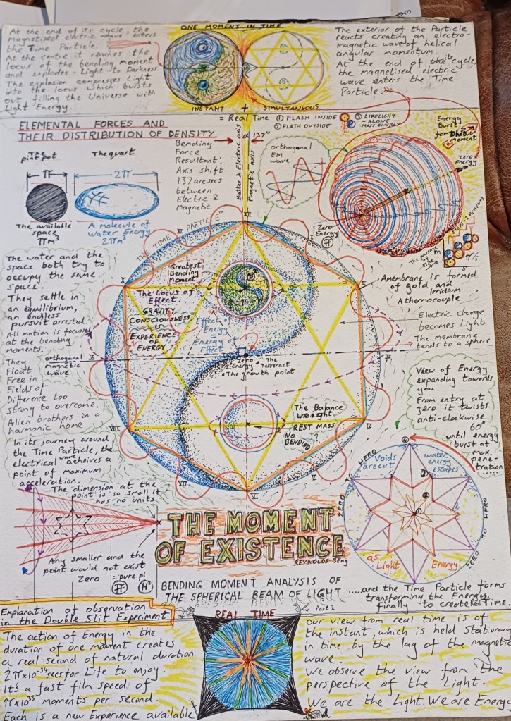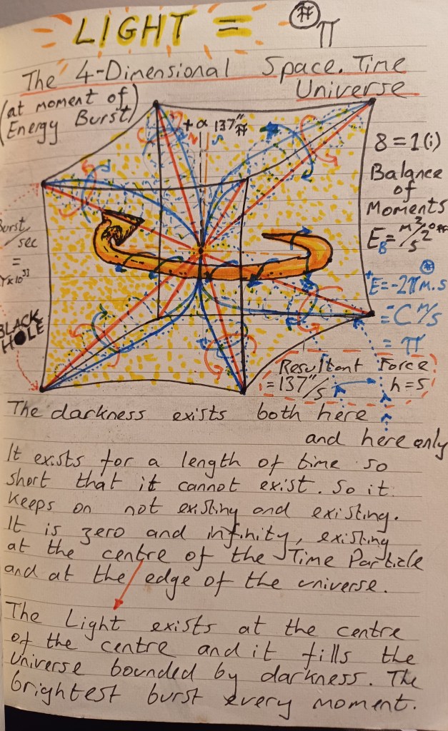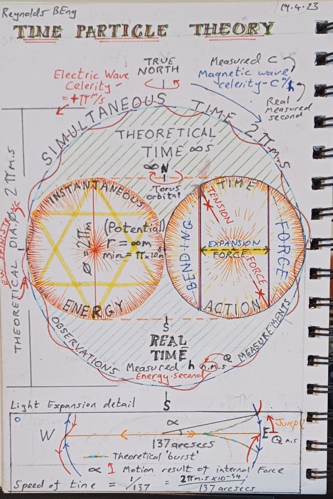 My journey of connecting the awakening of consciousness to the work of Dr Lewe through an understanding of the Reality of Light has been over three years, and involved translating information that is intuitively received into comprehension. My technique has been to draw and write, and then to assemble into a coherent model that makes sense to me. I have many notebooks and journals recording the steps; each one, at the time, was a step into a deeper understanding of a particular aspect and only over time have I been able to draw conclusions and cement certainties. The examples below are intended to reflect these thought processes, not to be an explanation in themselves. So much remains unknown, and perhaps, unknowable, but I am certain of this; the speed of light is not a constant value, the Theory stated in PCA’s ‘Circular Concrete Water Tanks without Prestressing‘ is the Nuclear Force of Dr V Lewe, 1915, and that the two are inextricably linked . From these simple facts, a whole new world can be created, one in which Humanity takes its rightful place in the Universe.
