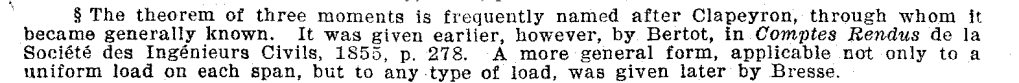 There is another connection between Lewe and Illionis University in the shape of Harald Westergaarb. In his 1915 dissertation Lewe attempts to correct the record with regard to the naming of the three moment theorem, which is ascribed to Clayperon. Lewe is aware of an article by Bertot {no information found}, published in a German Construction Magazine in 1855 (ref in text below) and corrects the record on Bertot’s behalf, recognising that credit is not being given where it is due. It is possible though that this piece of information helps to indicate at least one Engineer working in America that knew of Lewe, Harald Westergaarb.