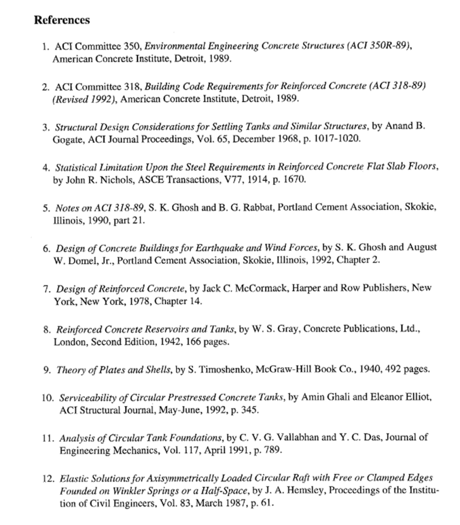 All other concrete tank design publications discuss openly that the design procedure is based on shell theory (often citing Timoshenko as I did (see my references attached). The PCA doc also references Timoshenko but I have not been able to locate the direct reference in the text, so in 2008 I presumed some connection to coefficient derivation. I presume also therefore that ‘The theory’ referred to in the note (which is in place of the edition list in 1993 issue, see above) is membrane theory, which is an extension of shell theory, and is used by Theoretical Physics in the production of nuclear weapons, among other things.